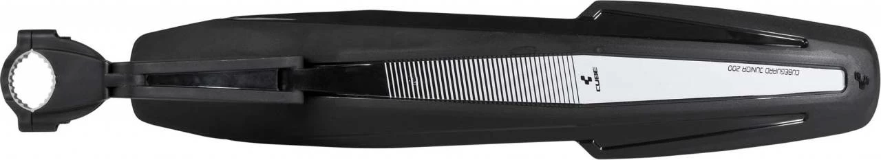Unser Cubeguard JUNIOR 200 hinten im coolen Enduro-Style! Das Schutzblech wurde speziell für 20″-Juniorräder entwickelt. Die schnell zu montierende, universelle Klemme gewährleistet eine sichere Befestigung an der Sattelstütze und am Sitzrohr. Gummierungen an der Klemme verhindern ein Verdrehen des Schutzbleches und schützen den Lack. Eine optimale Einstellbarkeit wird durch den zweigelenkigen Arm erreicht. Der hochwertige und kratzsichere Sticker vollendet das matt glänzende CUBE Oberflächenfinish.
