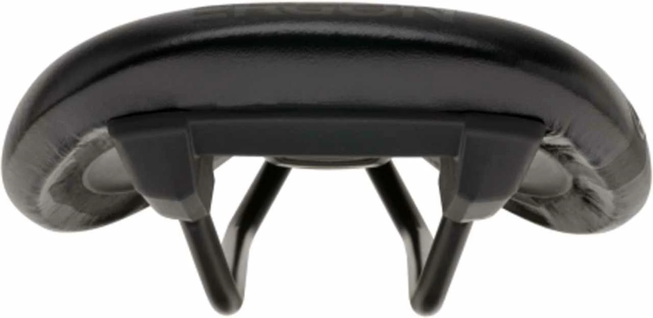 Der sehr tiefe, nach hinten abgesenkte Entlastungskanal mündet in einer Öffnung. Diese Konstruktion vereint alle Vorteile eines Lochsattels ohne seine möglichen Nachteile (sehr steife Sattelschale) und entlastet die empfindliche Dammregion des Mannes besonders gut. Zu hoher Druck in diesem Bereich führt häufig zu Beschwerden und Taubheitsgefühlen.