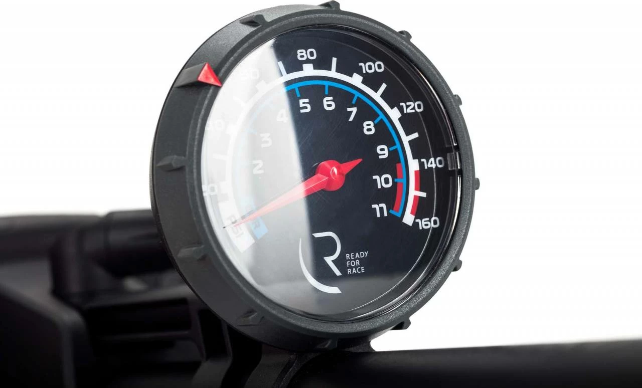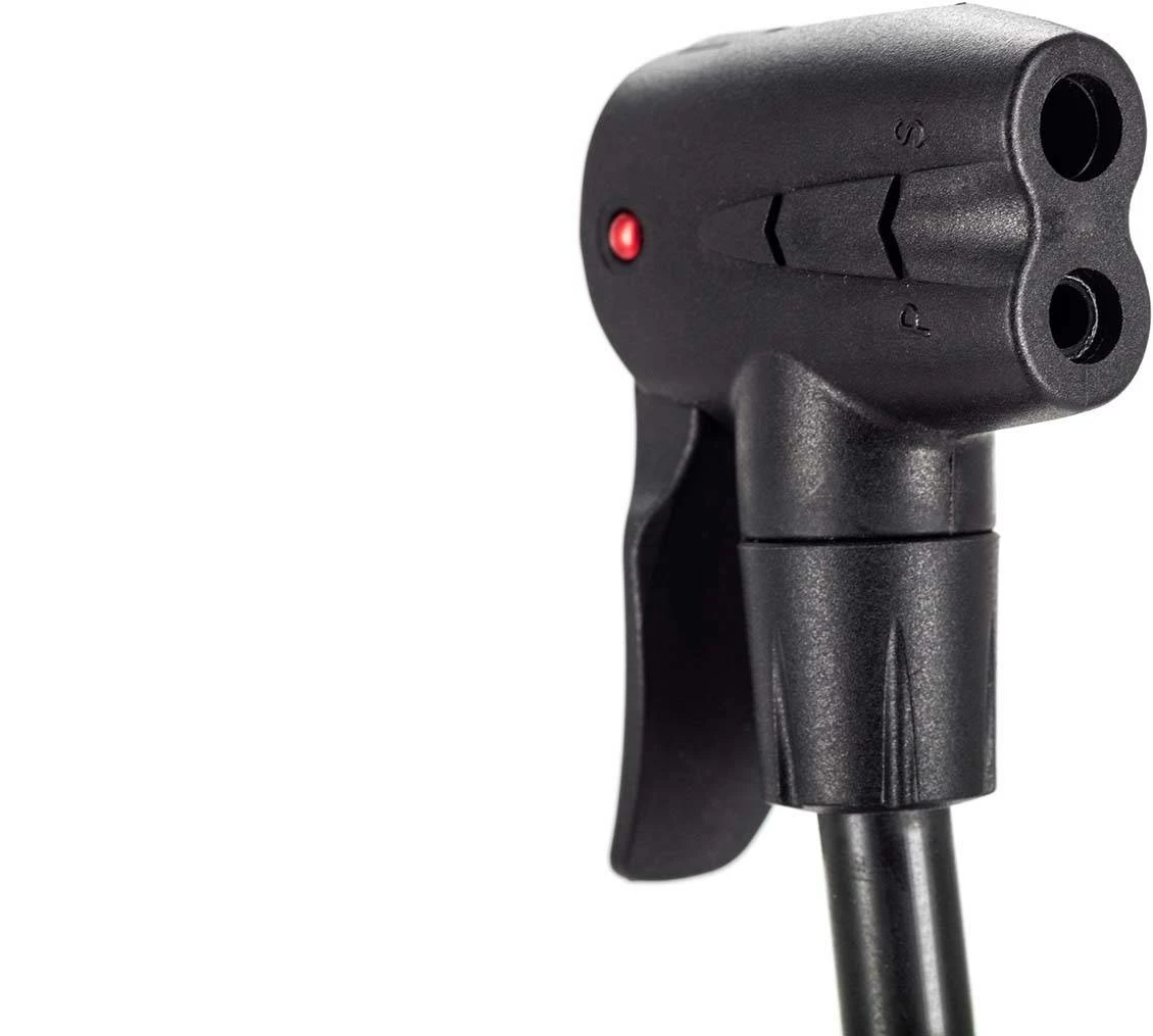 Presta- und Schrader-Ventilkopf mit Schnellverschlusshebel, Kunststofffuß mit integriertem Manomenter, 160 psi max.