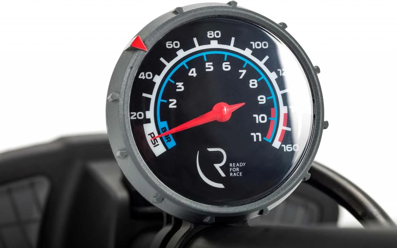 Presta- und Schrader-Ventilkopf mit Schnellverschlusshebel, Kunststofffuß mit integriertem Manomenter, 160 psi max.